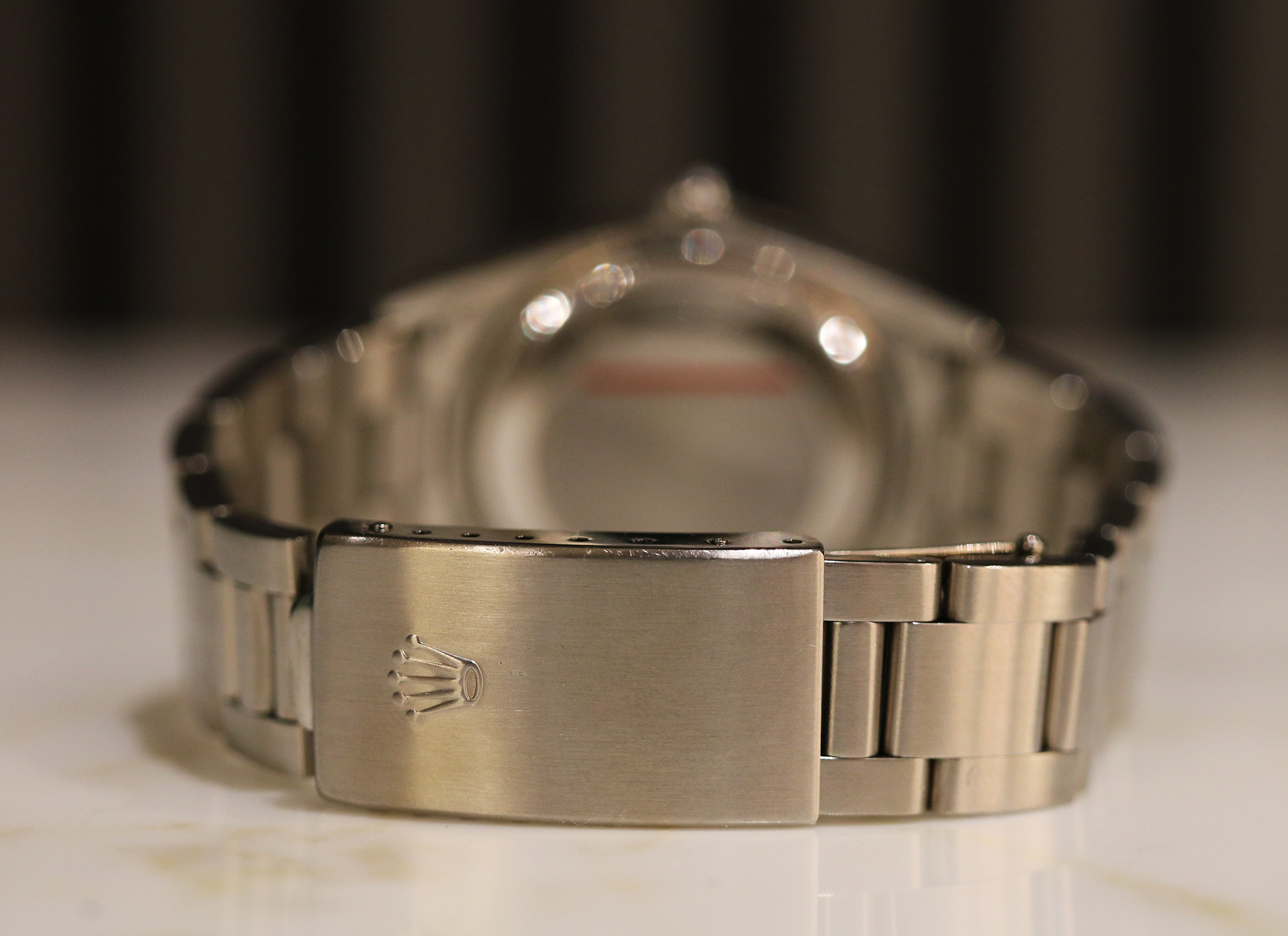 Rolex Air-King 14000 – Sobrietà e tradizione in un design essenziale. Cassa da 34 mm in acciaio, lunetta liscia e quadrante pulito, spesso argentato, blu o nero. Movimento automatico calibro 3000, vetro zaffiro e bracciale Oyster. Prodotto tra gli anni ’80 e ’90, è una scelta perfetta per chi cerca un Rolex vintage sobrio e versatile.