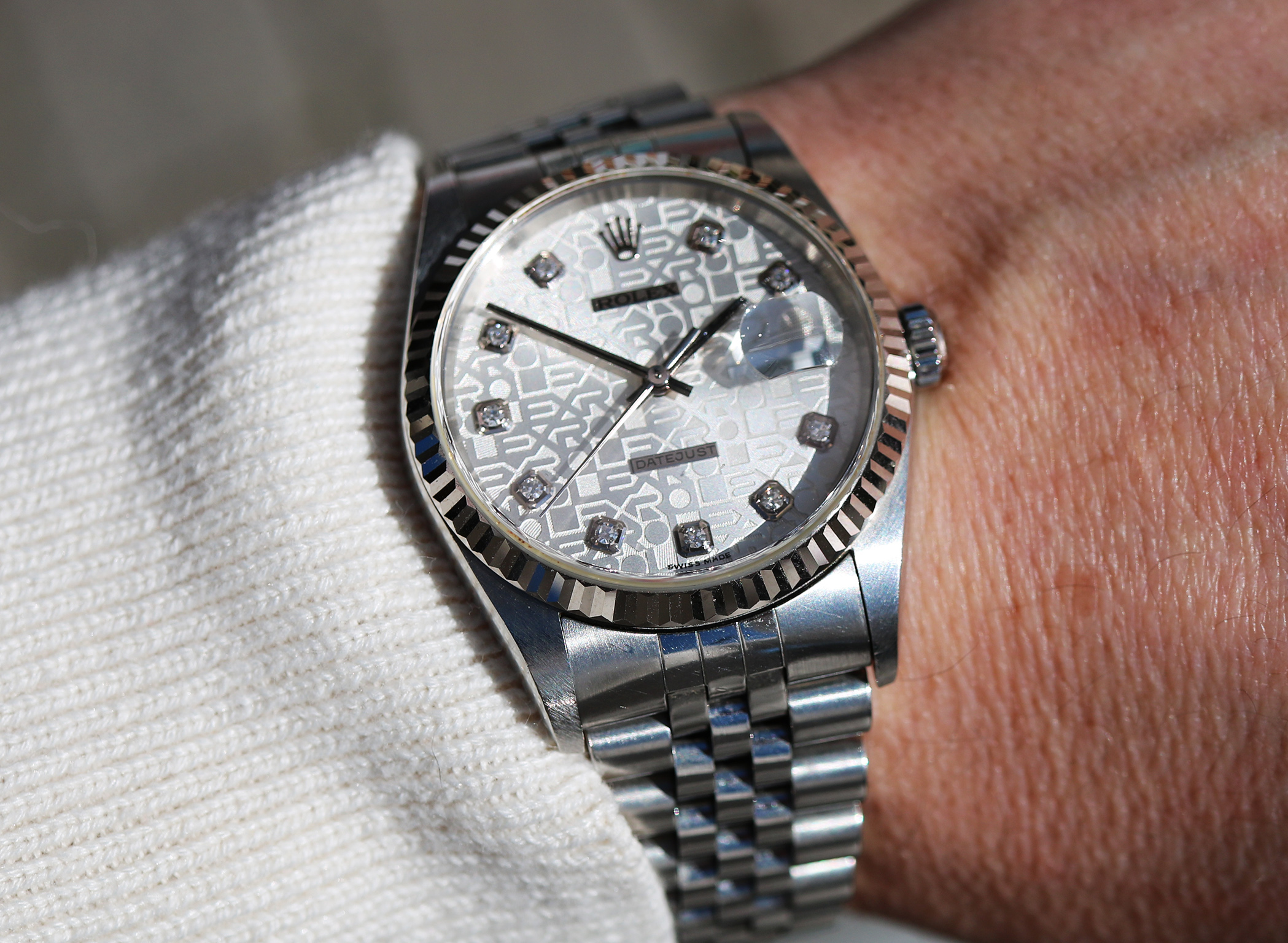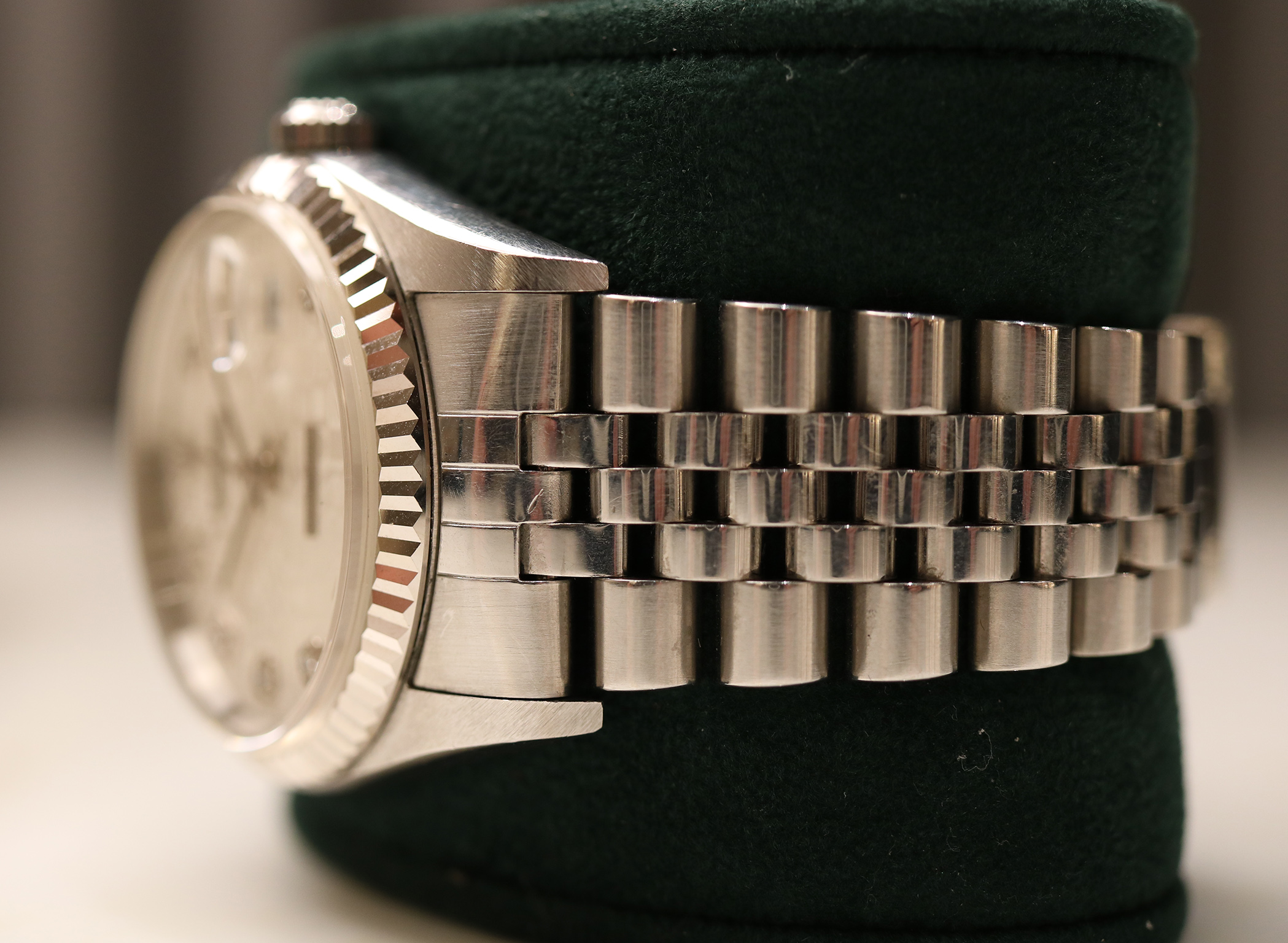 La configurazione è completata dalla lente Cyclope sul datario, elemento distintivo della collezione Datejust, e dal bracciale Jubilee, che garantisce comfort al polso e una perfetta integrazione con la cassa da 36 mm.